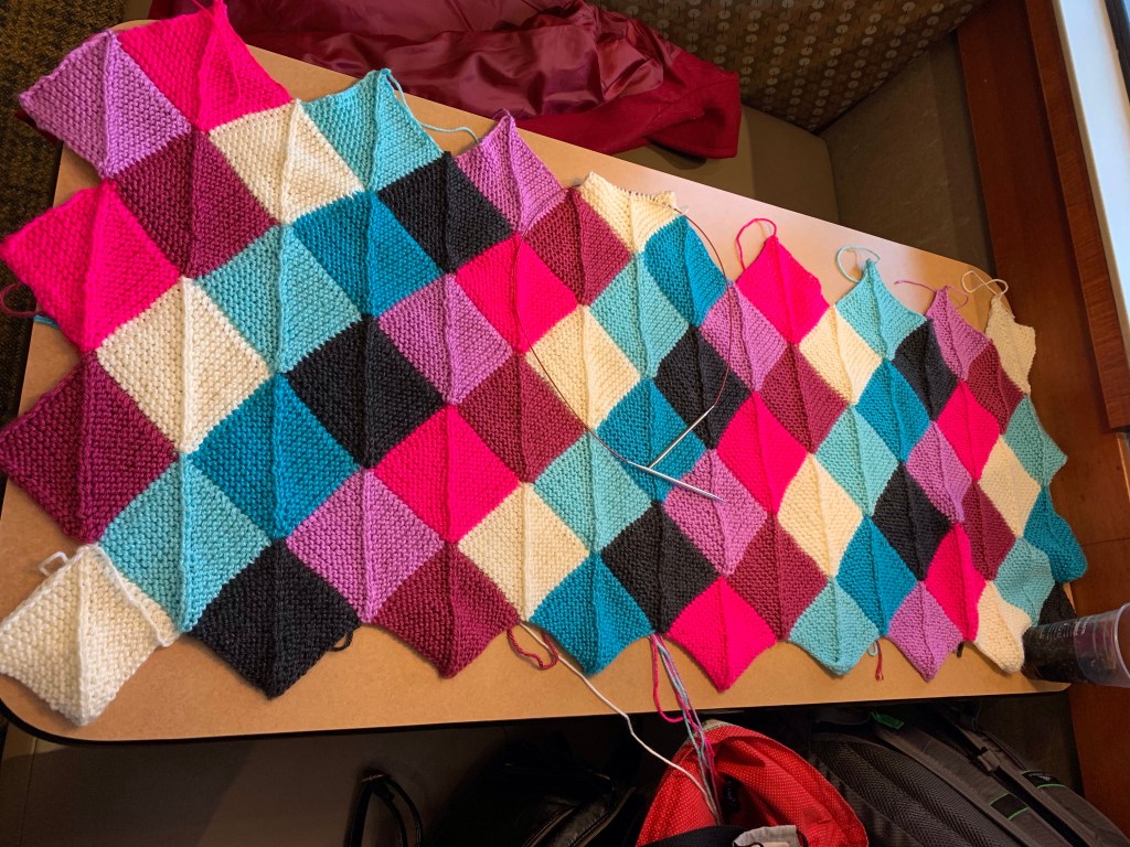 On January 1st, I cast on a blanket that will be a baby gift for a friend. Her due date was this past Monday. No word yet as to whether the little one has arrived, but I knew when I started that the finished product would be late. Such is life for me, not seems. Yesterday, I reached the 40% mark, so I still think I can make my self-imposed deadline (Super Bowl Sunday), but it will be tight!