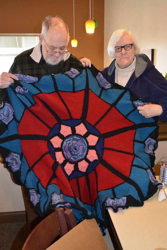 And before that, I knit a blanket for my parents’ 50th wedding anniversary, based on the design of (IIRC) the North Rose Window in the Notre Dame Cathedral.