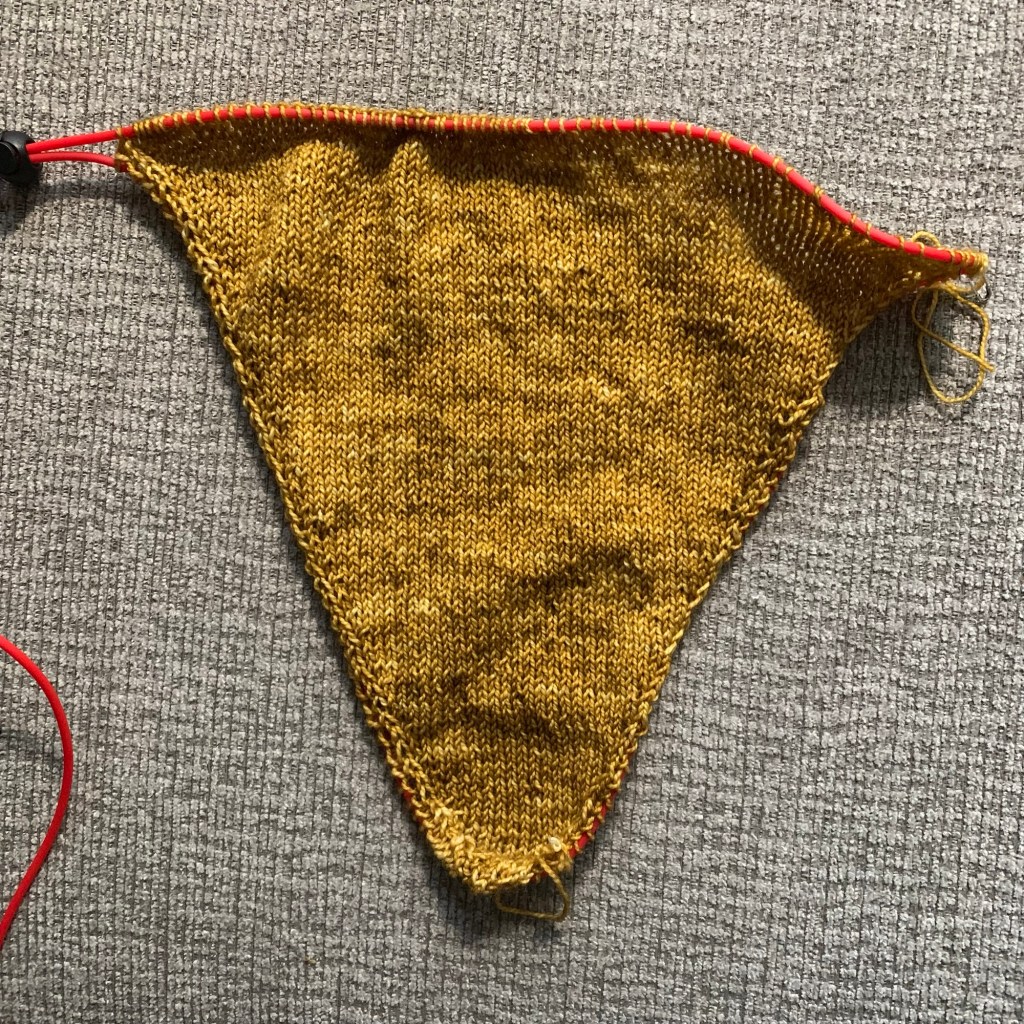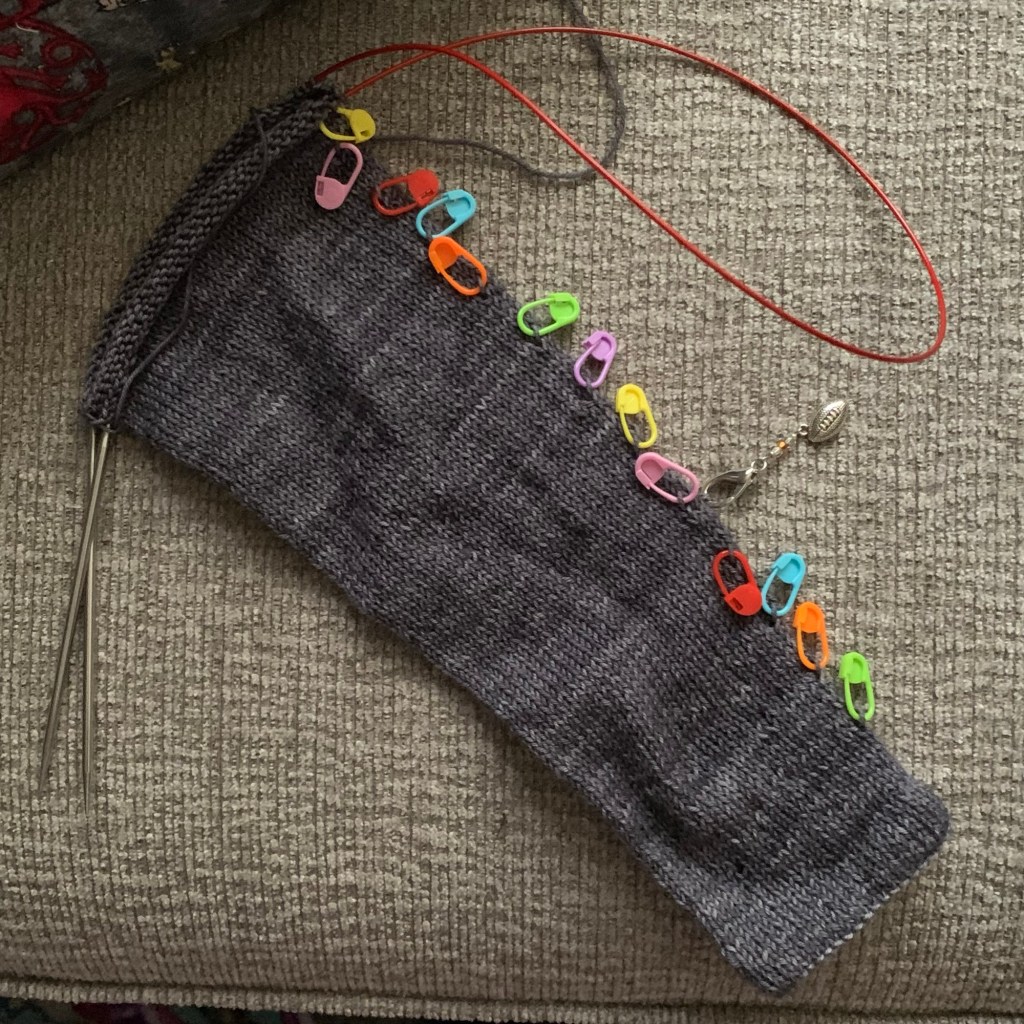 And my other WIP from last week saw some attention late in the week. The first sleeve of this sweater is close to being done with the increases.