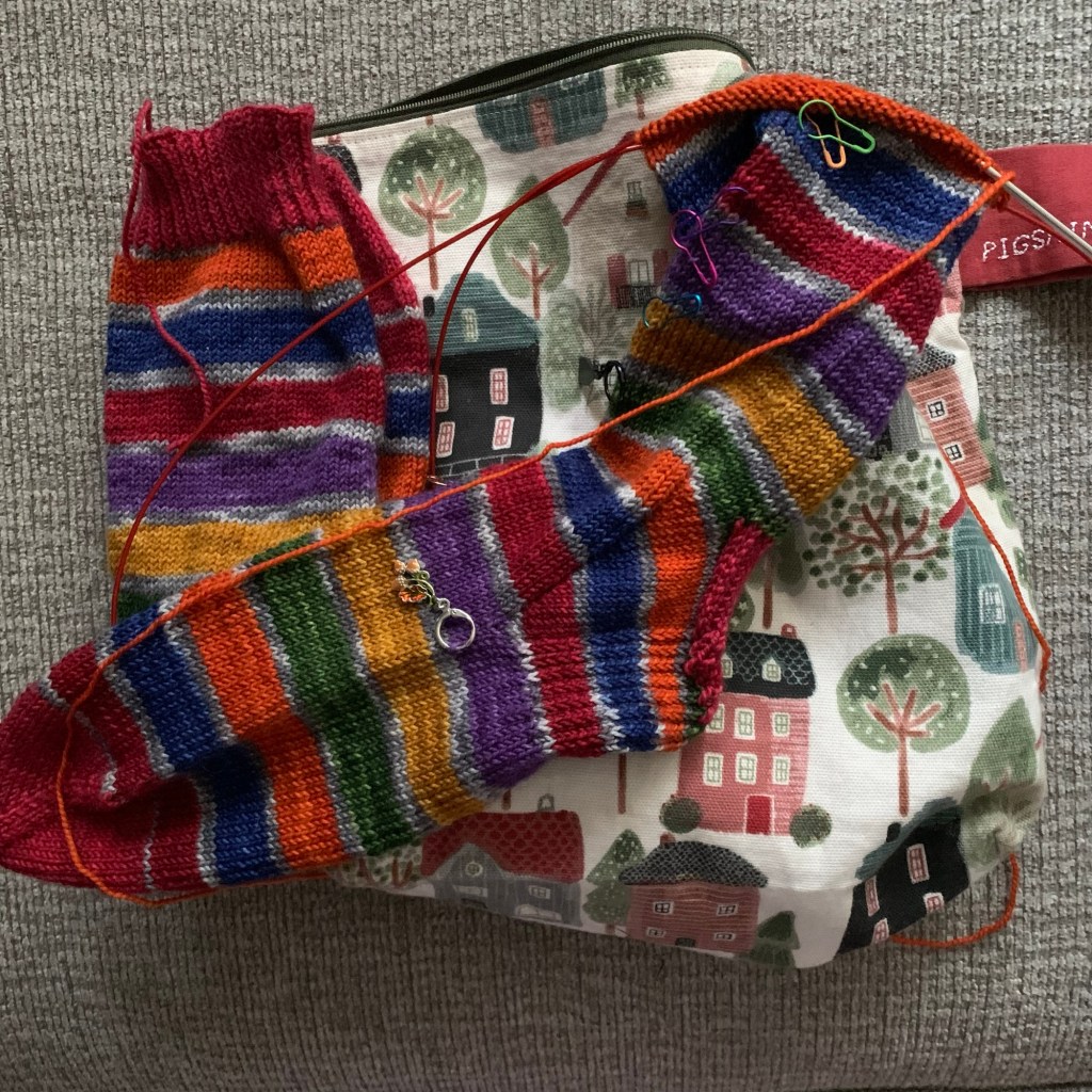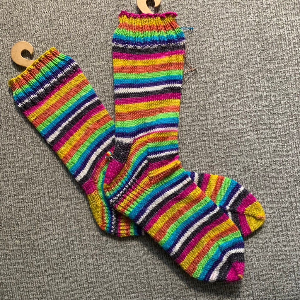 We’ll start with the knitting. I did finish the pair of socks for the January edition of the Tenth Annual Desert Vista Dyeworks Monthly Sock Club.