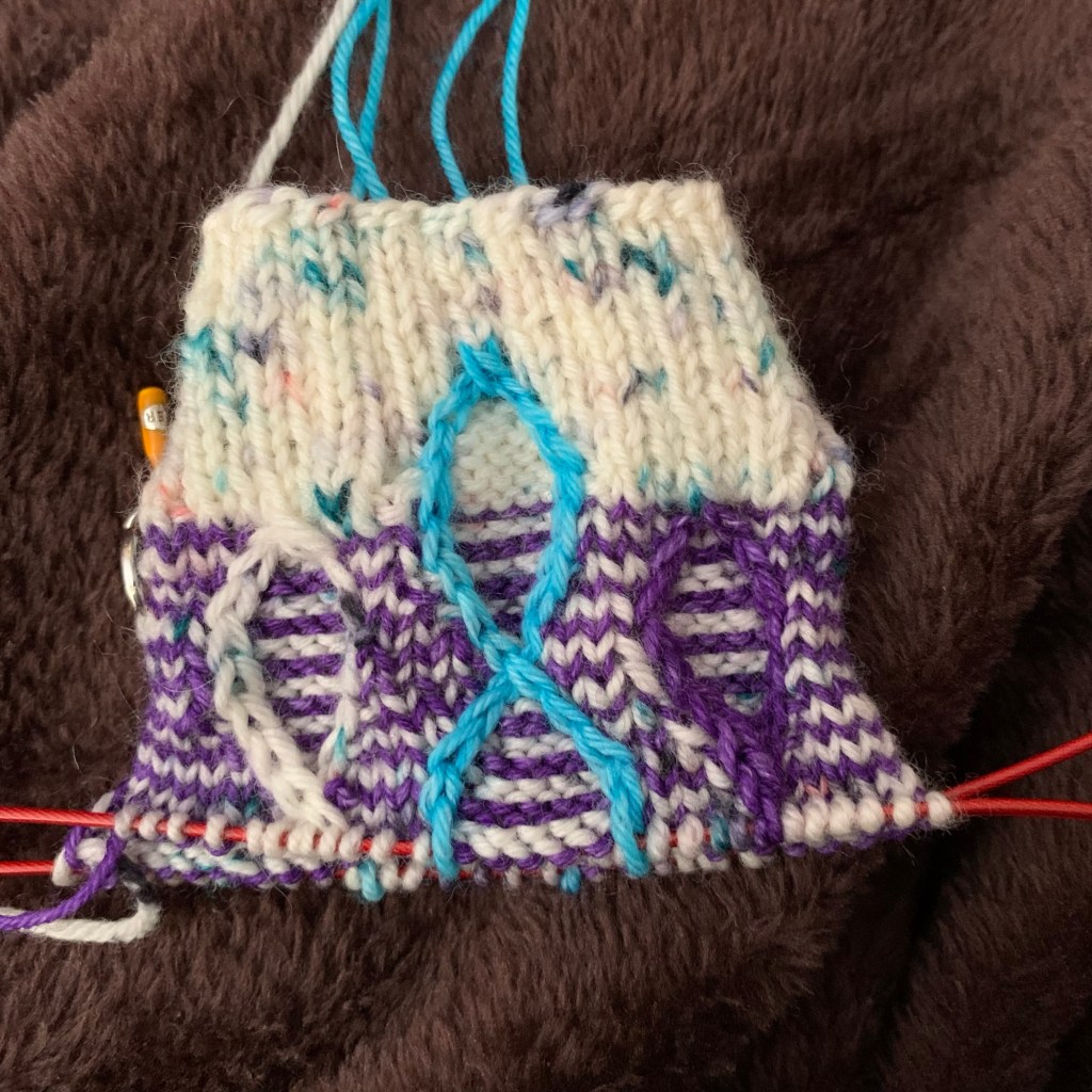 I’ll leave you with a photo of my Sock Madness qualifying project… I took a photo after completing one chart repeat. I’m close to finishing the second repeat now, with about five more to go (along with the heel flap and turn and gusset shaping) before the toe decreases… fingers crossed that I can make the deadline!