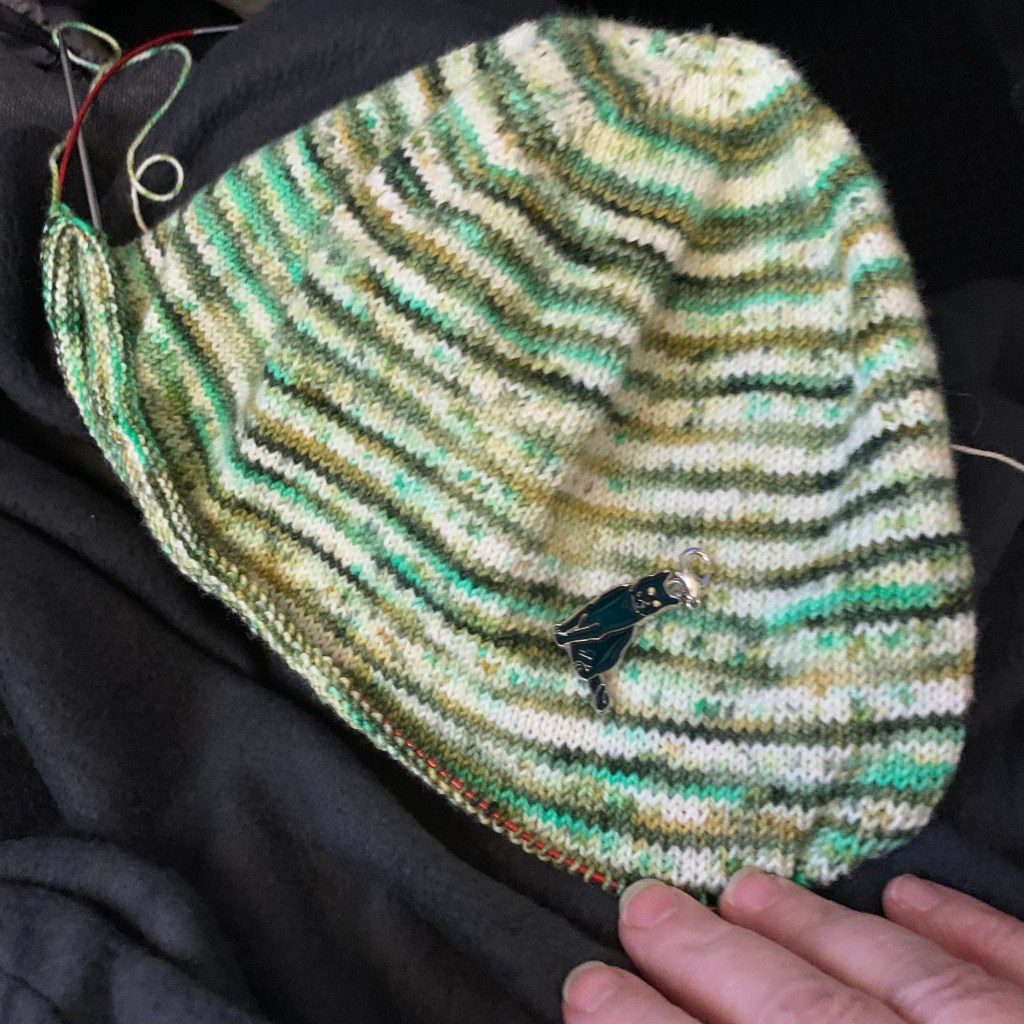 Lastly is the hat. I knit on this a bit, but most of it was on the overnight flight because I didn’t have to see what I was doing. 😂😂