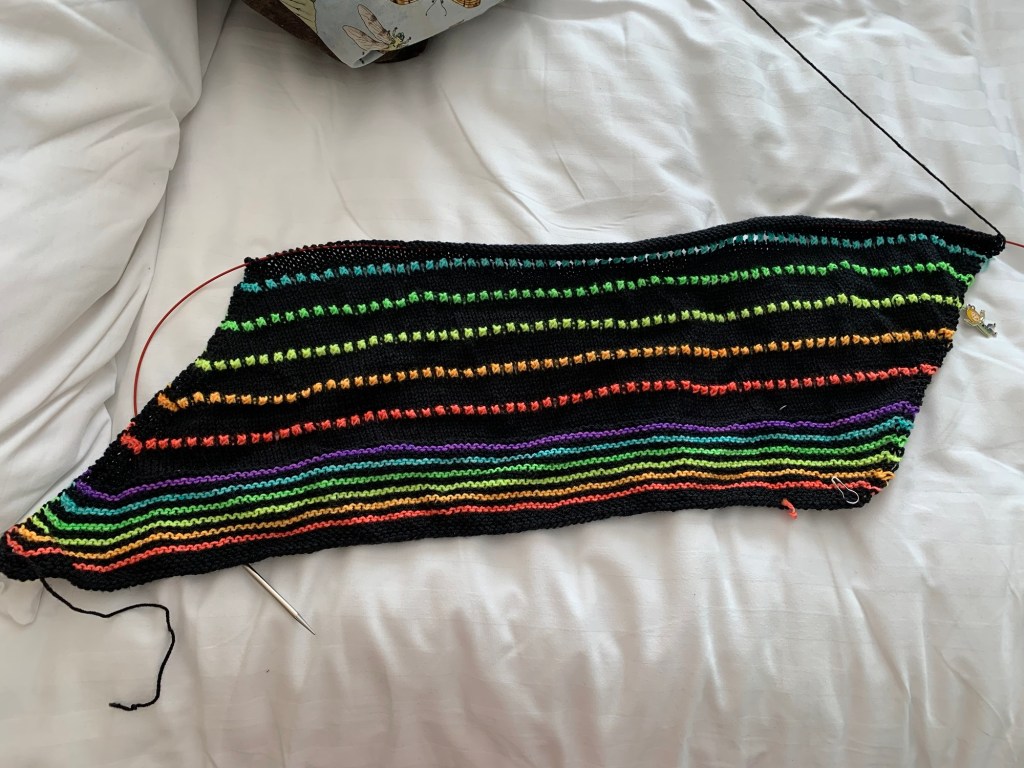 The rainbow shawl saw some love early in the week and then nothing. That’s the only project done anything with in my travels.
