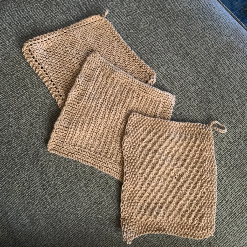 And I managed to use up the whole 100g ball of cotton yarn on this set of dishcloths. I actually lost at yarn chicken on the last one, but I fudged the bind off so hopefully it’s not noticeable.