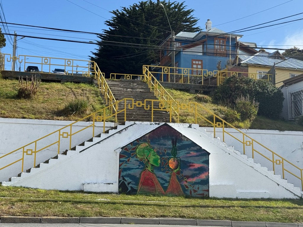 And here’s the long story… We arrived at Punta Arenas, Chile, this morning. I had planned to take it easy and stay on board the ship since I hadn’t booked an excursion. A lot of folks in our group had booked a tour to Magdalena Island where the penguins are. But the cruise tours were sold out, and I really wasn’t comfortable spending the money when I’d already had an amazing penguin experience. But when I went for breakfast, I happened upon Laura sitting alone. I joined her and grabbed my light meal for the morning. She was planning to go walking, particularly to check out the city overlook and a yarn shop.