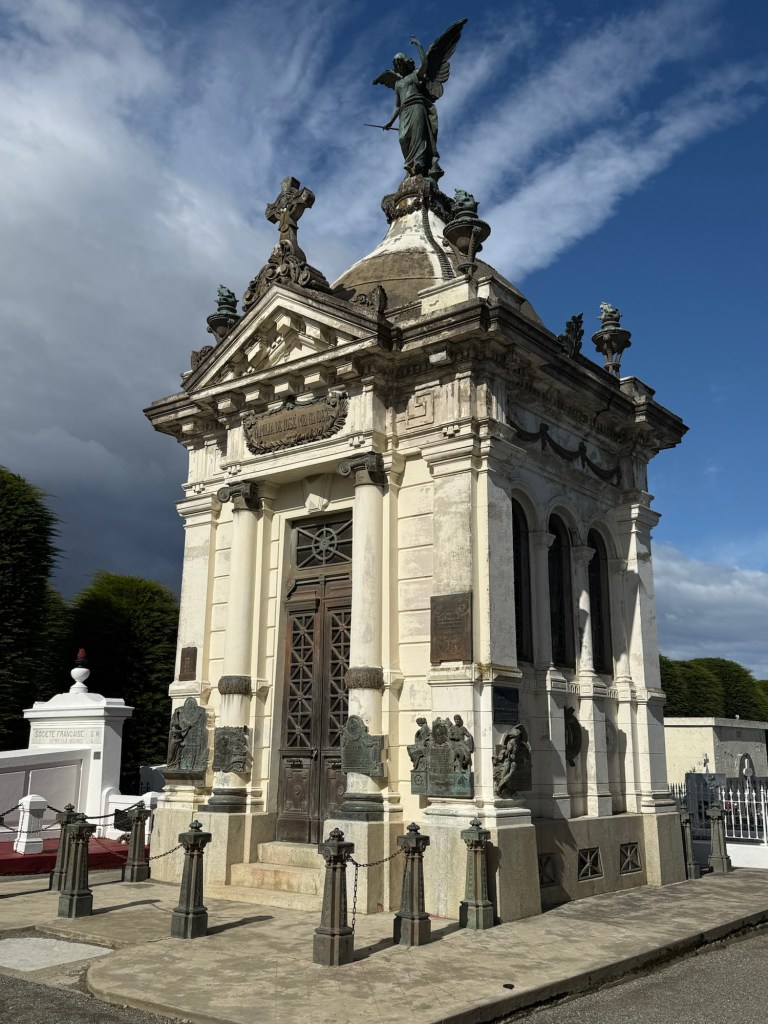 Making our way back toward the port, we decided to stop in to the Sara Braun Cemetery (Cementario Municipal). Sara was a key figure in the story of this city, and she bequeathed this property to the city for the cemetery. The grounds are gorgeous, and there are some notable local families interred here.