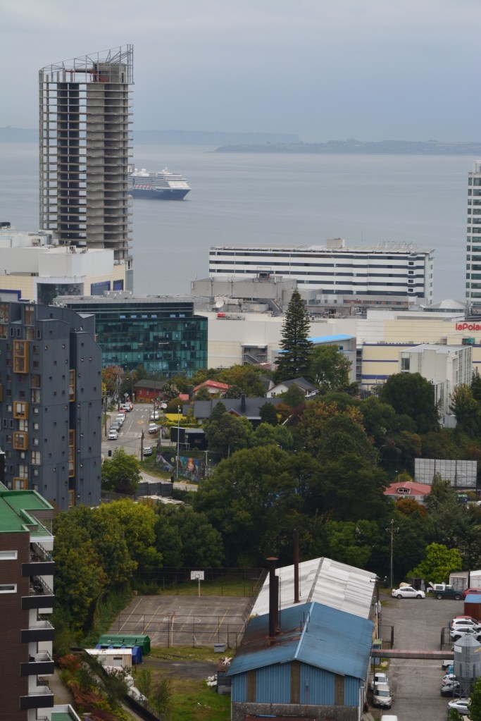 Today we arrived at Puerto Montt, Chile as the sun was coming up. The ship was able to clear customs in a timely fashion, and I was on a tour that was arranged by another knitter in our group. It was nice to make the rounds of the area with folks I know, and we had a couple extra-special moments.