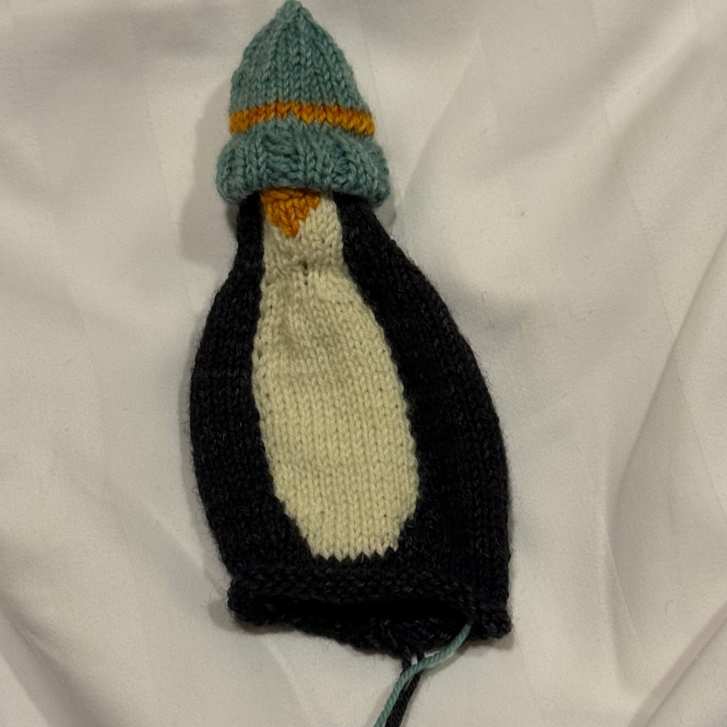 I started the penguin a few days ago on a shortie needle I bought in Buenos Aires, but my fingers just couldn’t manage it. So once I finished my second Monopoly sock, I could use the longer needle here. I did modify the brim of the hat to make it longer, and I have a couple other mods in mind. I’ll share more next time.