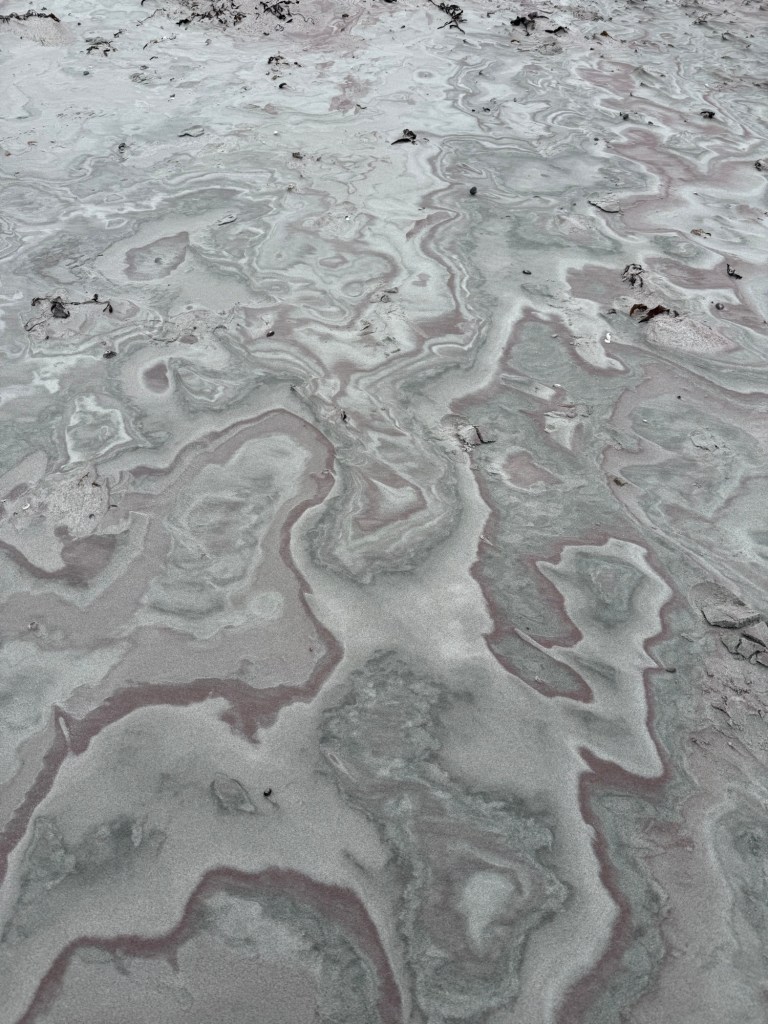 Monday – at Bluff Cove, while I was there to see the penguins, I was also really amazed by the coloring of the beach. I don’t know what causes this, and I haven’t had the time to investigate. But here’s a photo anyway.