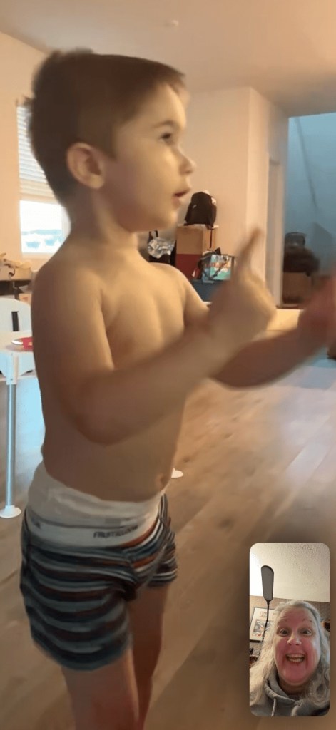 During the week I also finally connected with my grandson! I called on FaceTime on Tuesday night after my DoorDash shift, and most of the time I watched him dance to The Wiggles on YouTube. 😆 He knows all the lyrics and actions, and he whispers the words while dancing along with the performers. He also gave the phone hugs every now and then. And during “Hush-a-bye Your Bear” he made the shushing motion on the image of my face on the phone. Creative kid, that’s for sure. I still don’t know when I’ll get to see him again in person…