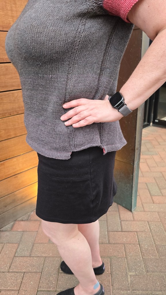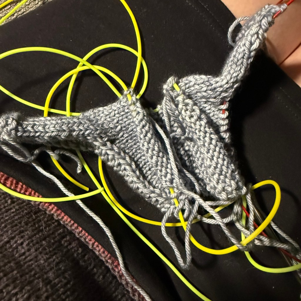In knitting related content, this past weekend I went to a local yarn store for a knitting workshop: Laura Nelkin’s “Knitting a Novus Sweater Workshop.” In full disclosure, I took this course back in 2021 in Pittsburgh, my first time meeting Laura IRL. But since then she has discovered several ways to use stitch saver cord to simplify several techniques in the sweater construction process. Her Novus collection of designs feature “her seamless yet structured modern approach to the side-to-side sweater” and having her on site gives us the opportunity to get her input in choosing a pattern, a size and yarn. Laura also is quite accessible to answer questions later.