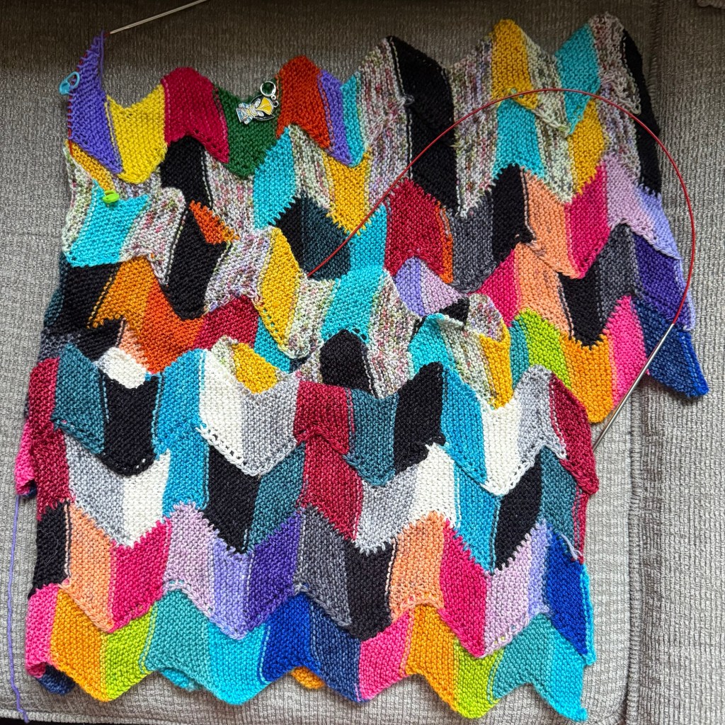 And the blanket saw a little more attention, though not much. At least this time I finished a complete ten-row zig. 😉