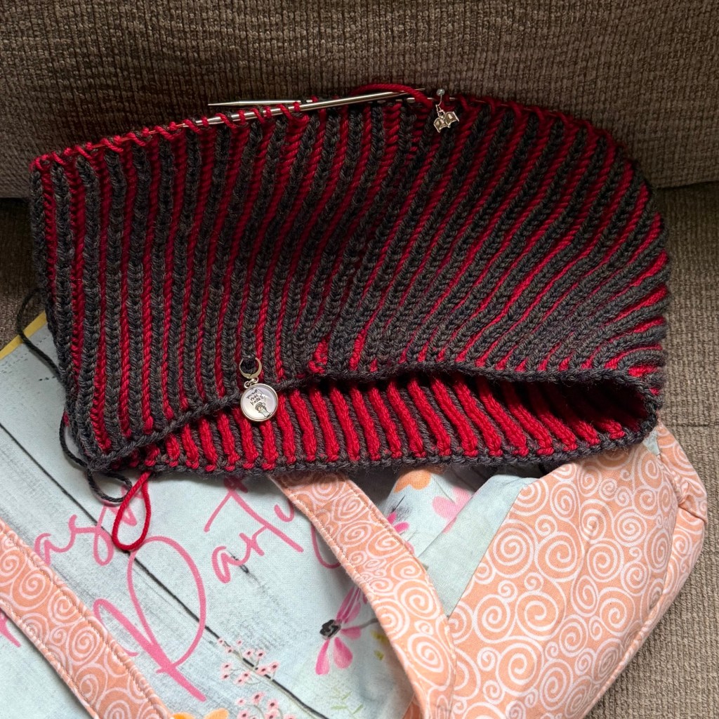 This week was also a productive one for my Camp Loopy project! I couldn’t start until June 1, and this needs to be done by June 30. That deadline shouldn’t be a problem, as I’ve used up nearly half of both skeins of yarn. If you recall from last week, I need to use at least 400 yards in this project, and the two skeins combined have 440 yards (or more); my goal then is to use as much as possible. I need to double-check with The Loopy Ewe event moderator, but I think I can add in more yarn I’ve purchased from them previously, so I might work until at least one skein is all gone, then use one of my leftovers of Cascade 220 Superwash in black to complete the bind off.