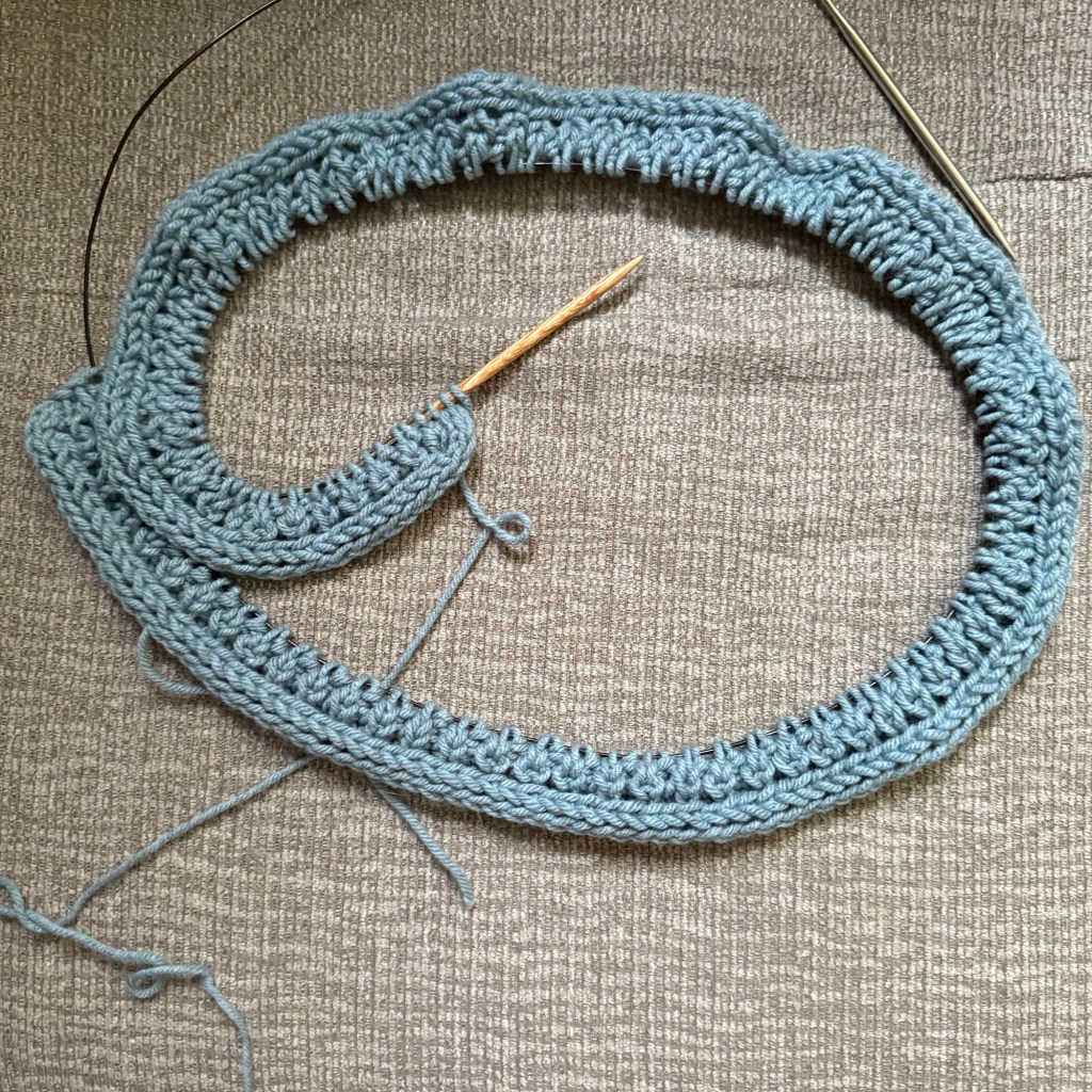 And lastly, we’ll see if I finish this or lose motivation, or maybe I’ll add a second color or two… but a simple Fisherman’s Rib blanket struck me as a good idea for some of my acrylic yarn stash.