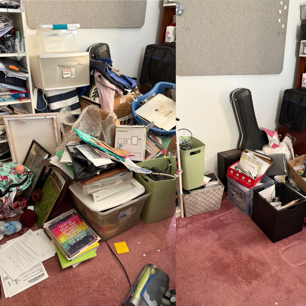 And my final morning session was spent in the office, reducing the pile of clutter that had built up after the All-Day Declutter event in April. I’d shifted a bunch of stuff in here from the living room which was downright silly! Once again, I got a lot of stuff out of here! A couple boxes of donations were filled up plus a lot of recycling and a bit of trash. Honestly, the recycling topic has been my Achilles heel in decluttering – I don’t want to throw things in the trash if we can reduce the amount of materials sent to the landfill by instead recycling them. And it’s not like recycling here is even hard – we have a weekly collection schedule! It’s something I continue to work on – but it starts by getting this stuff out!