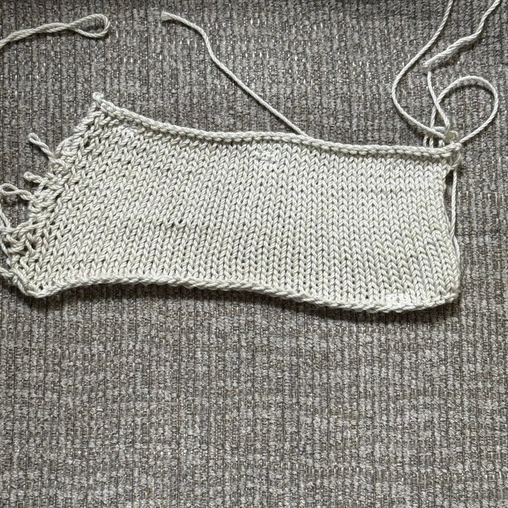 Since the event runs for five months, it allows for bigger projects to be completed. I’ve got plans to cast on a couple sweaters, including one spectacular design! I swatched this past week for both sweaters. First, I picked some deep stash yarn, a cotton-rayon blend I bought back in 2012. The sweater design is one that was made to be knit up over a long weekend, though I won’t need to race through it at all. It’s a seamless design with short sleeves and a fun leafy lace bodice design. My swatch used a technique to simulate knitting in the round while not having to do so. Because of the way this technique works, the edges of the swatch are not helpful in checking gauge; but after blocking, it came out pretty close to the desired gauge. Woot.