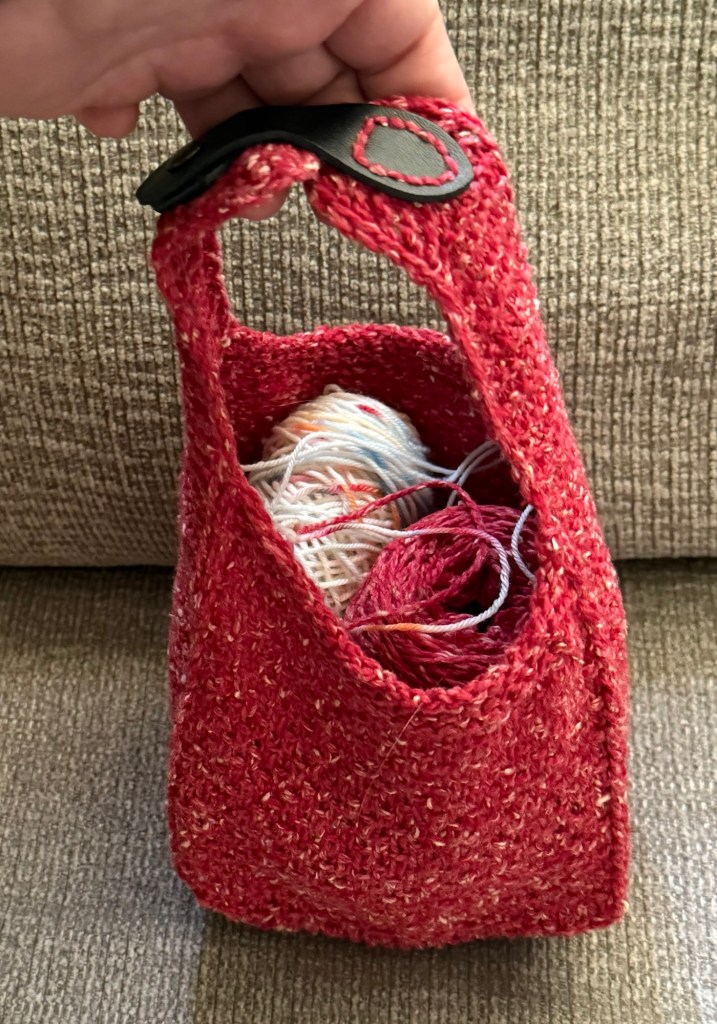 I also finished the Novus Pouch, and it’s blocked nicely, complete with clasp. This may become a gift bag…