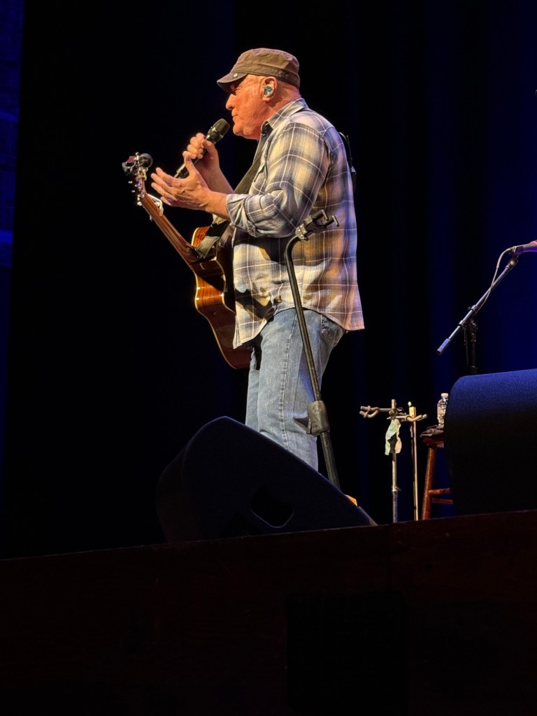 It’s been a minute since my last concert (Billy Joel/Stevie Nicks last summer) – but I made it to TWO concerts this week, both offering some great flashback moments! On Thursday evening, I made it downtown to the Southern Theatre to see Collin Raye, a chart-topping country singer from the 90s, the brief period when I was fixated on country music. Collin had a bunch of great hits that I loved and have sung through the years. He featured an opening solo act, SJ McDonald, who was a lot of fun. I had managed to nab a front-row seat, which also placed me within the stage lighting. That meant I could see my knitting – and so could SJ! When she grabbed a drink of water between songs, she asked what I was making, so we had a brief exchange there. I even managed to start the gusset increases on my sock – since I have the pattern fairly well memorized!