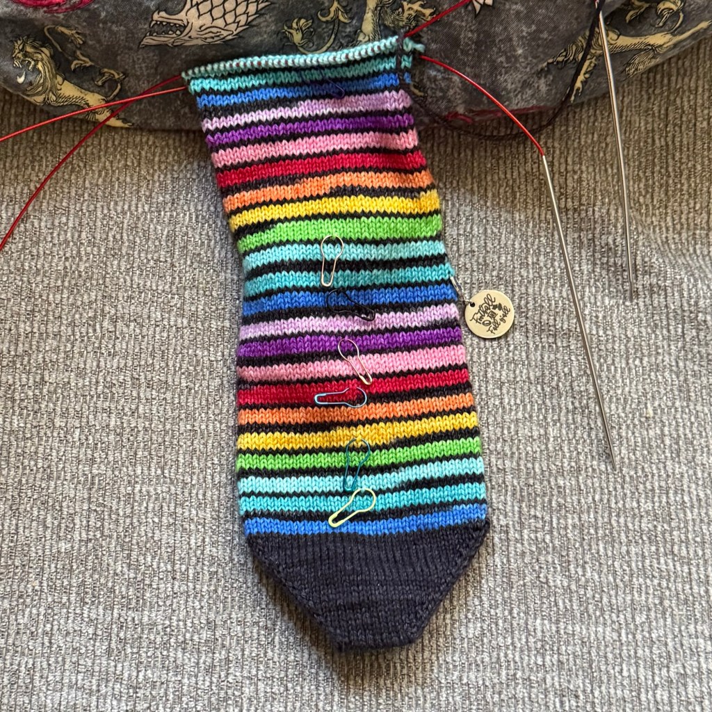 I also managed to finish up the sock I started the week before – the yarn is scrumptious and while I had to work from a chart for the stitch pattern, it’s still simple enough to work while watching television. I’d like to wear the pair of socks later this month to see the Wicked: For Good movie.