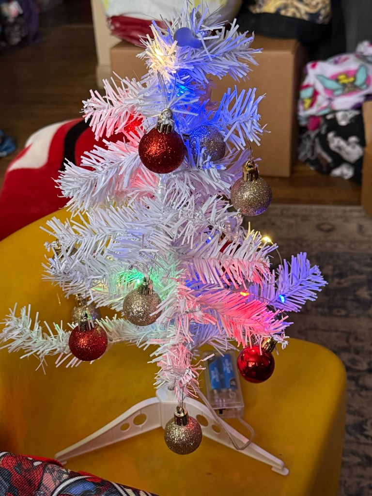 I have a few things to share here – and I’ll start off with the subject in my post title! Gratitude: as the US celebrated Thanksgiving last Thursday, I was glad to start the day with the kiddo. I expected him to return in the afternoon or evening, but that didn’t happen. Still, I’m oh-so-grateful to have him in my life, even if his dad (my son) is dealing with his own challenges. We have a very good relationship, and he’s even taken to meltdowns when he has to leave my house with Mama. Thankfully, he can always come back! When he came to visit on Friday, he insisted on bringing the tree he decorated late Thursday.