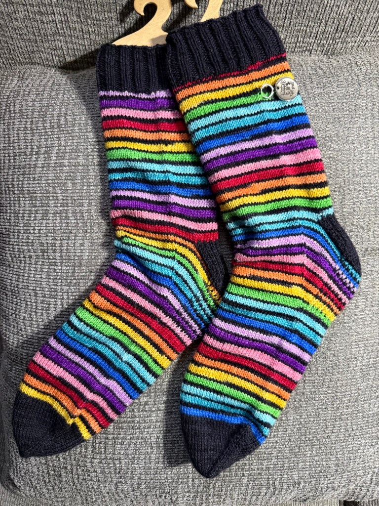 I managed one FO early in the month. When I last posted, I was very close to the contrast cuff on my rainbow vanilla socks.