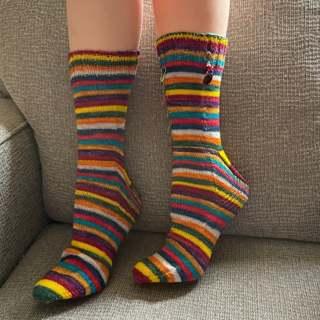 I finished three projects last week, which means I also cast on three! The easiest item to finish was that second sock that only needed a few rounds of ribbing a week ago.
