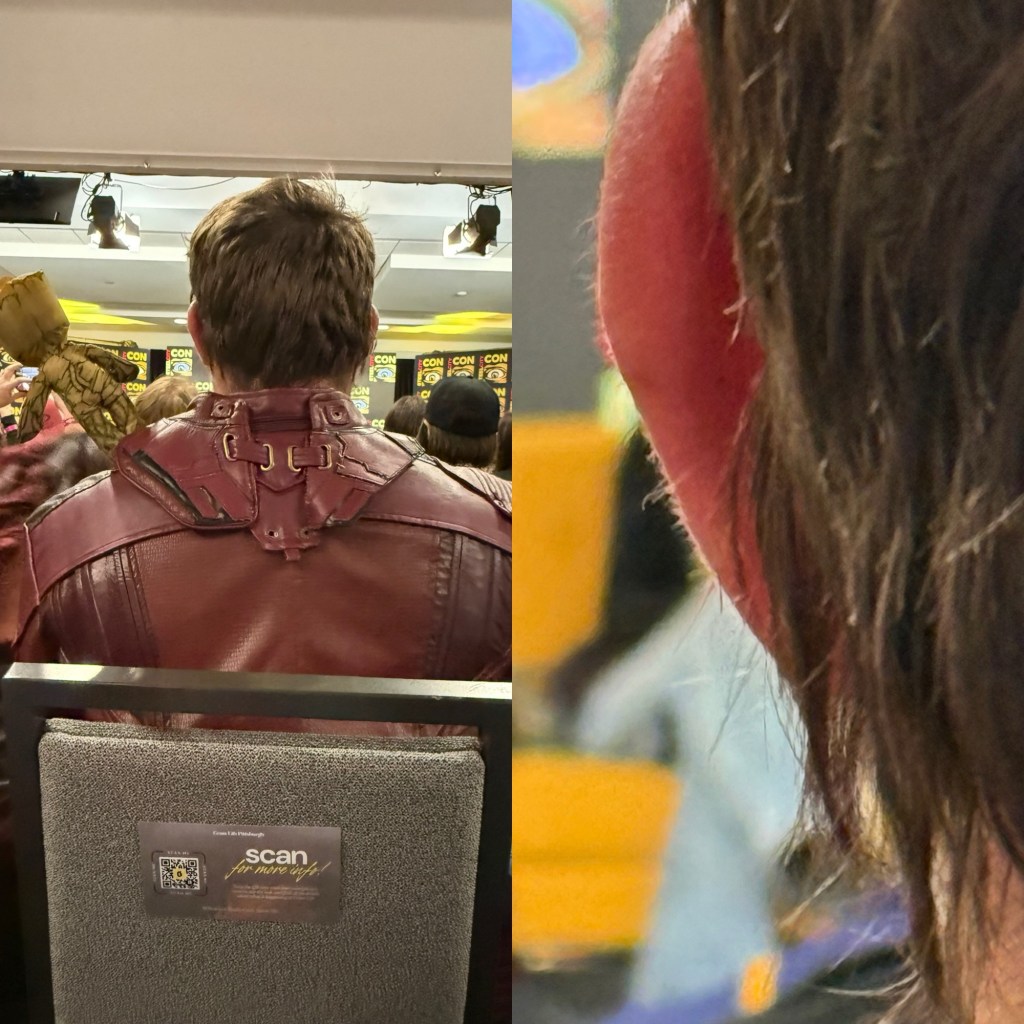 My biggest pet peeve with events like this where the audience is seated on one level in row-on-row of chairs is the people who don’t show any consideration for the people seated behind them. My view in many instances was blocked by others with their cell phones raised above their heads – worse are those who record rather than just taking a couple pictures. But I was most annoyed by the guys who sat in front of me at the Guardians panel – he switched seats with his companion, likely because her view was blocked. But this meant my view was then blocked. Then he would lean his head to the left or right, often as I was trying to get a shot.