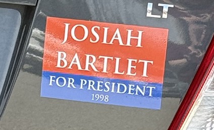 Since that book ended early in my return drive, I switched gears to something completely different. I was inspired by my chat with Patricia Richardson as I’d specifically stopped to talk with her because I appreciated her performance in The West Wing, and I was jealous that she’d gotten to work with Alan Alda in her role as his campaign manager. She told me that a couple people had brought their copies of this book for her to sign: What’s Next: A Backstage Pass to The West Wing, Its Cast and Crew, and It’s Enduring Legacy of Service, by Melissa Fitzgerald and Mary McCormack (intros by Aaron Sorkin & Allison Janney) and narrated by the duo. I own the physical book and the audiobook as well. And that reminds me of something I spotted in the convention center parking lot on Friday.