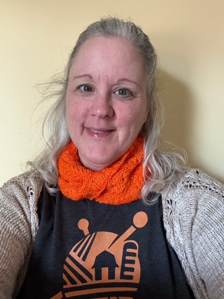 On Saturday, I attended almost all of the Q&A sessions while also knitting up a storm on the cowl I shared earlier. I wasn’t able to watch the Zoom presentations for Knit For Food, but I did my best to promote the event with my t-shirt and actively knitting. I also made a point of recognizing the event in my photo op for the day!